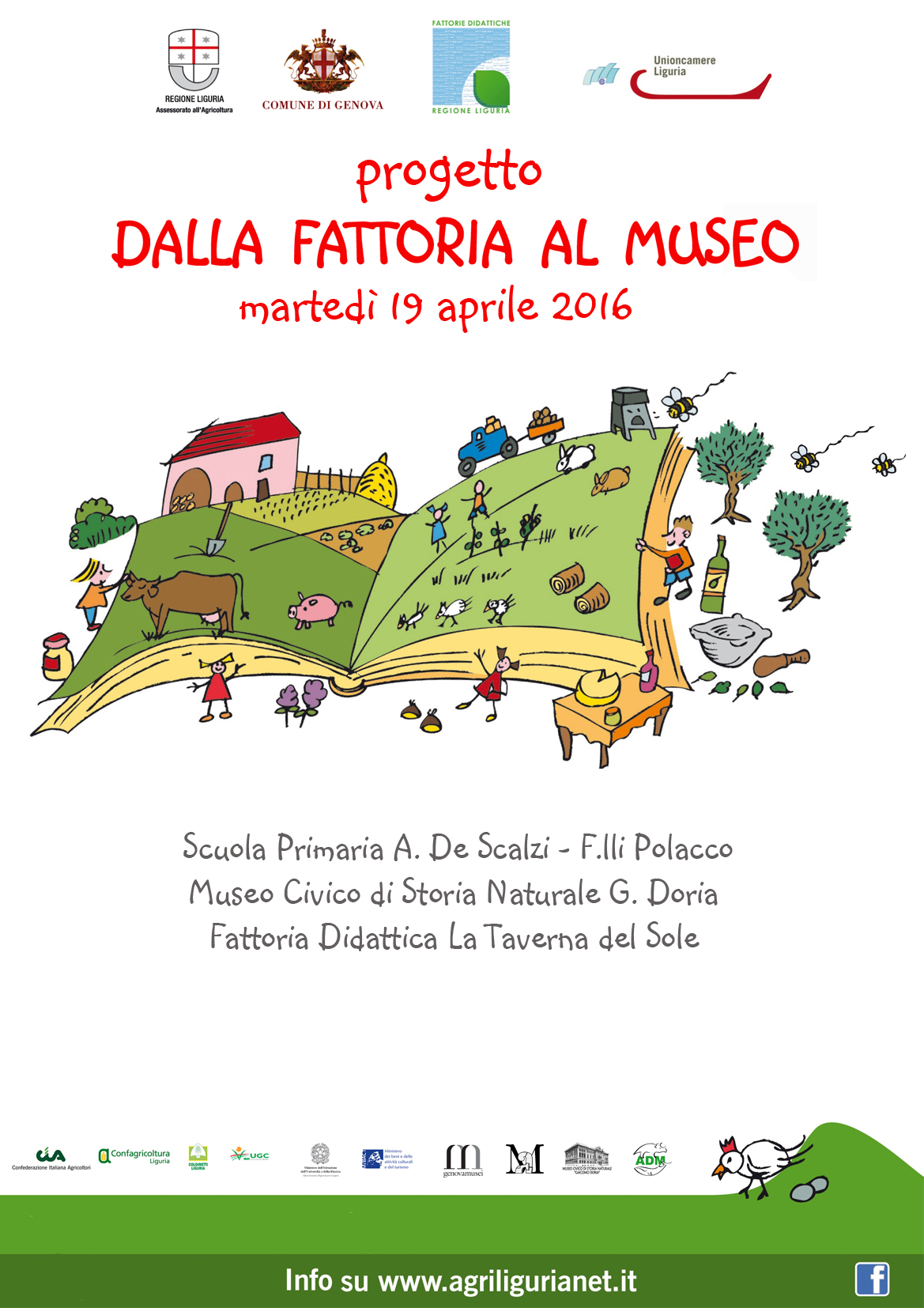 Questo progetto è organizzato dalla Soprintendenza Belle Arti e Paesaggio della Liguria, con la collaborazione dell’Assessorato all’Agricoltura - Regione Liguria, del Museo Civico di Storia Naturale “G. Doria”, del Museo di Archeologia Ligure e del Museo di Storia e Cultura Contadina Genovese e Ligure di Genova. I riferimenti delle fattorie didattiche della Provincia di Genova si possono trovare nel libretto allegato in formato .pdf o scaricabili dal sito www.fattoriedidatticheliguria.it.